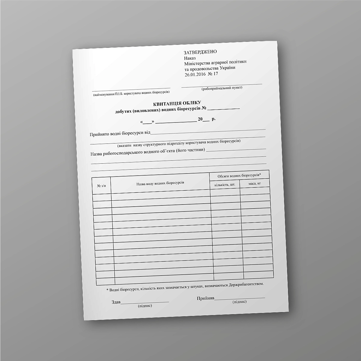 Квитанція обліку добутих (виловлених) водних біоресурсів.