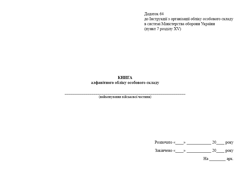 At printto.ua, you can order the magazine: Book of Alphabetical Personnel Accounting. If the magazine you need is not available in the Printto.ua Market, send us an e-mail at info@printto.ua, and we will definitely contact you. Read more: Book of alphabetical accounting of personnel. Appendix 6 to the Instruction on organization of personnel accounting composition in the system of the Ministry of Defense of Ukraine (clause 7 of section II) (Access restriction icon) Landscape orientation. Format: A4 In stock, delivery time 1-2 working days.