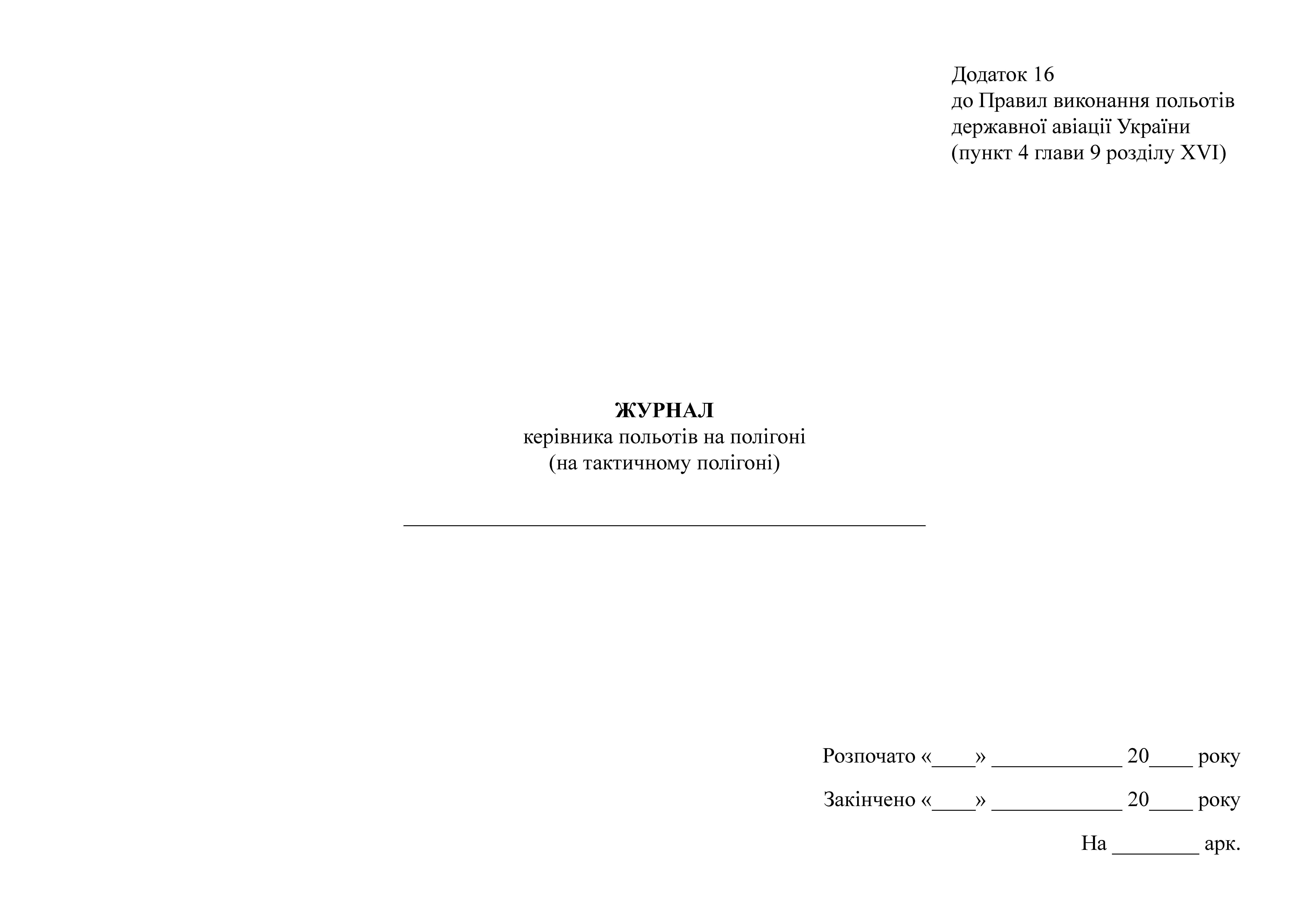 Журнал керівника польотів на полігоні (на тактичному полігоні).