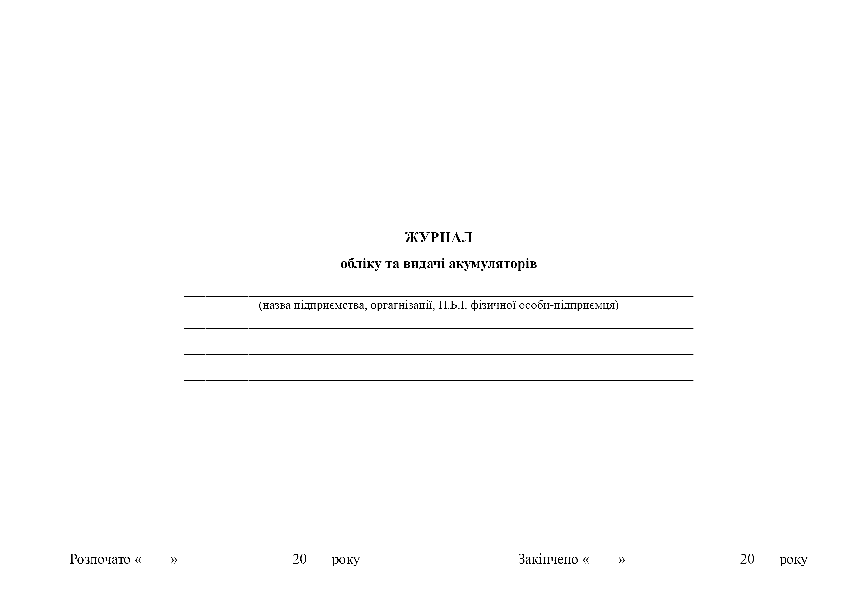 В printto.ua Ви можете замовити: Журнал обліку та видачі акумуляторів.