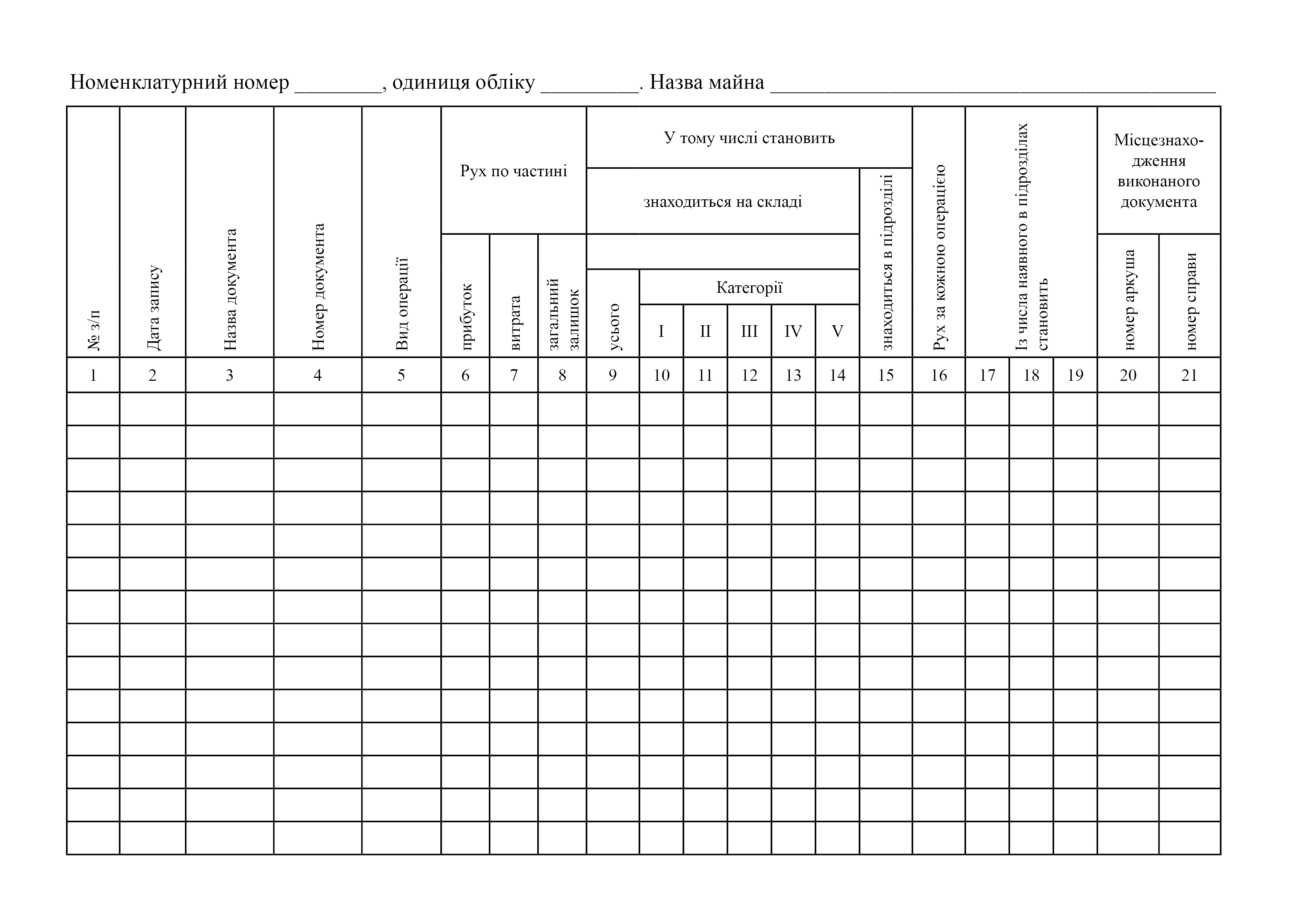 Книга обліку майна номенклатури служби ракетно-артилерійського озброєння.