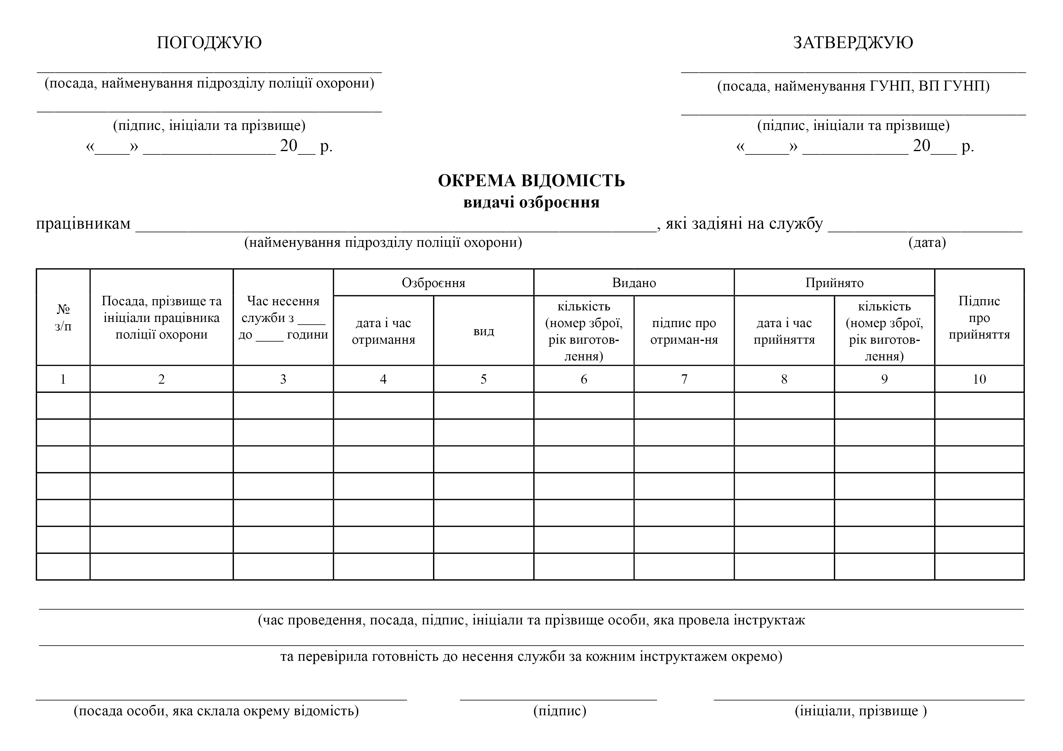 В printto.ua Ви можете замовити: Окрема відомість видачі озброєння.
