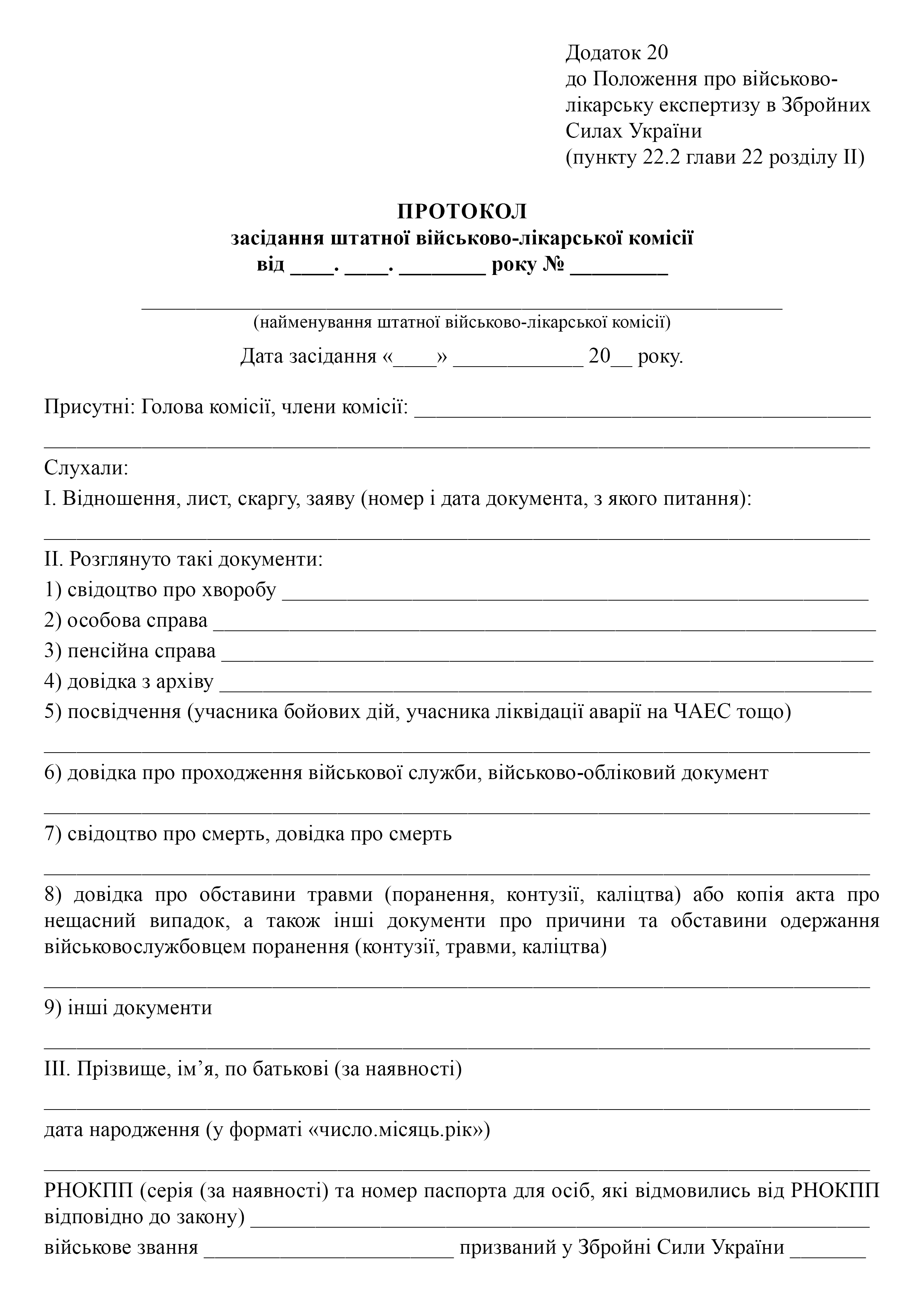 В printto.ua Ви можете замовити: Протокол засідання штатної військово-лікарської комісії.