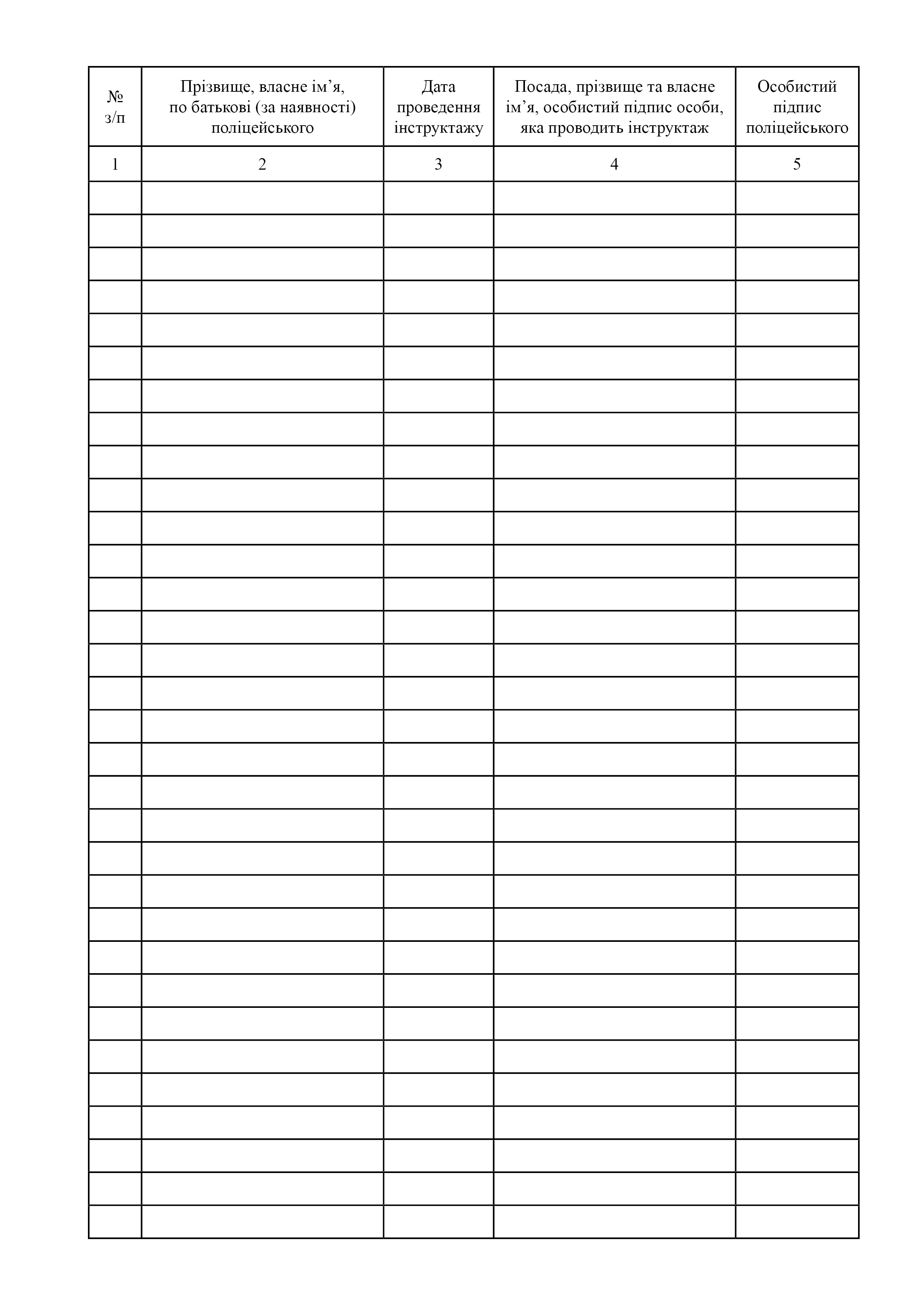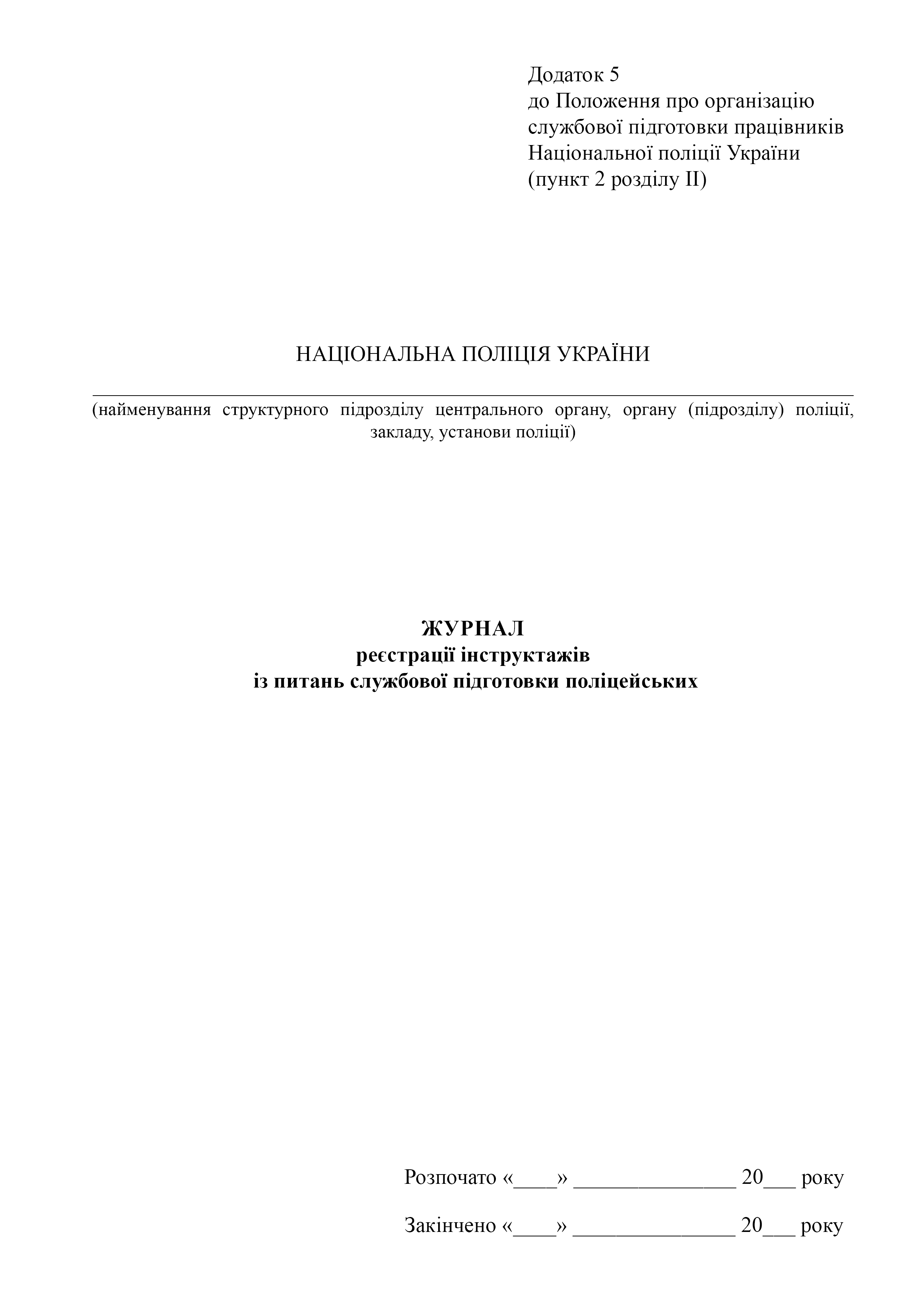 Журнал реєстрації інструктажів із питань службової підготовки поліцейських.