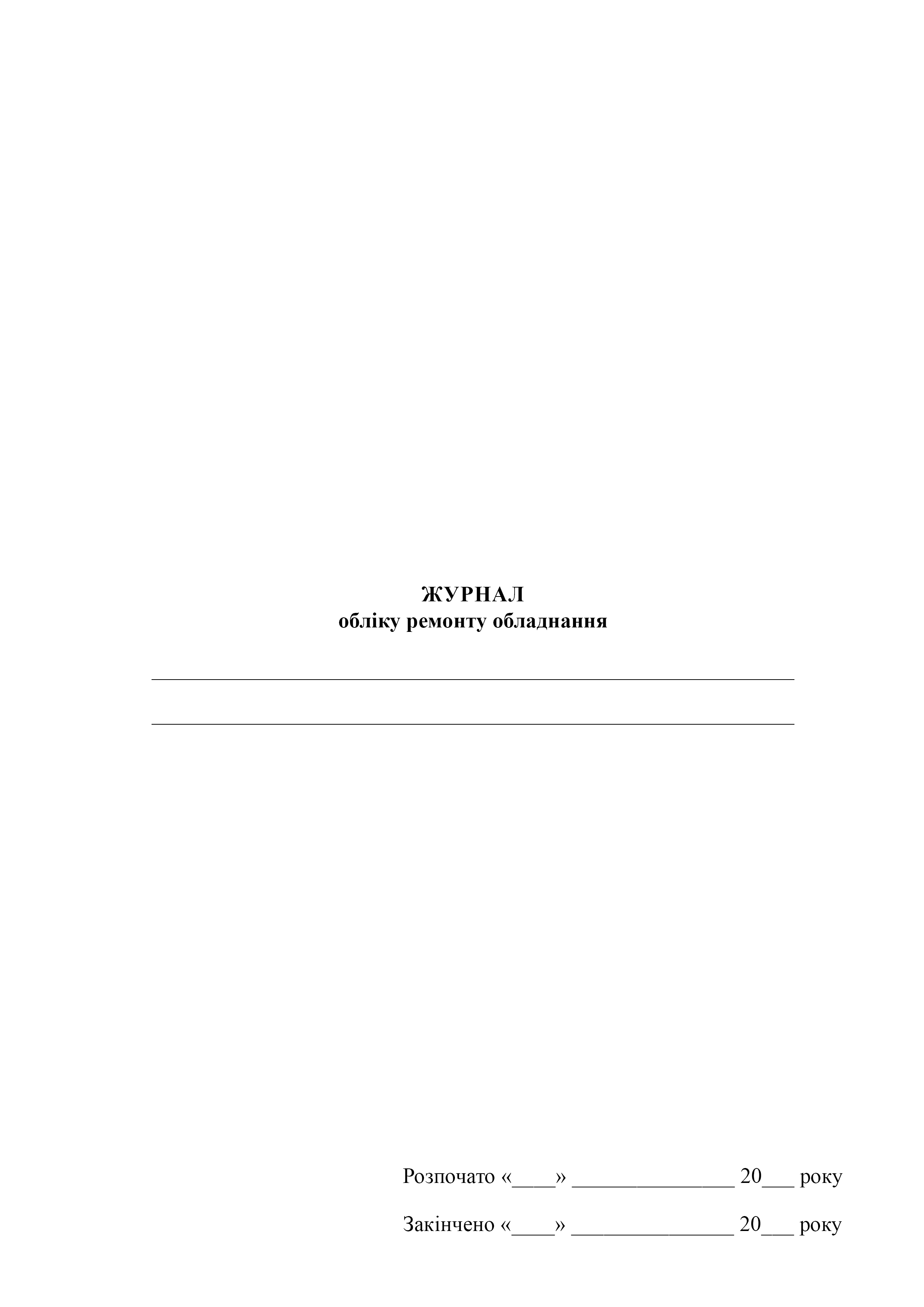 Журнал обліку ремонту обладнання.