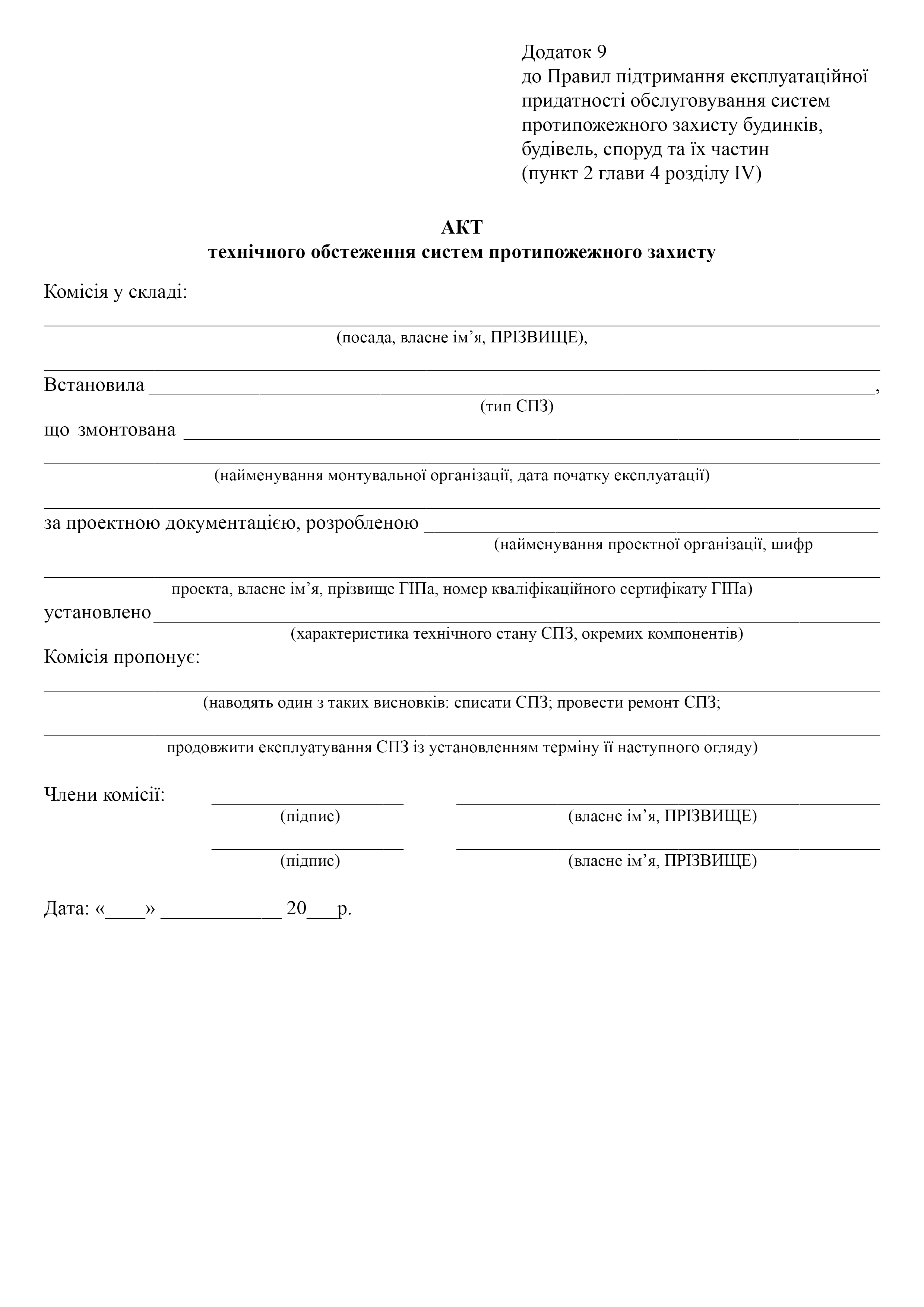Акт технічного обстеження систем протипожежного захисту.