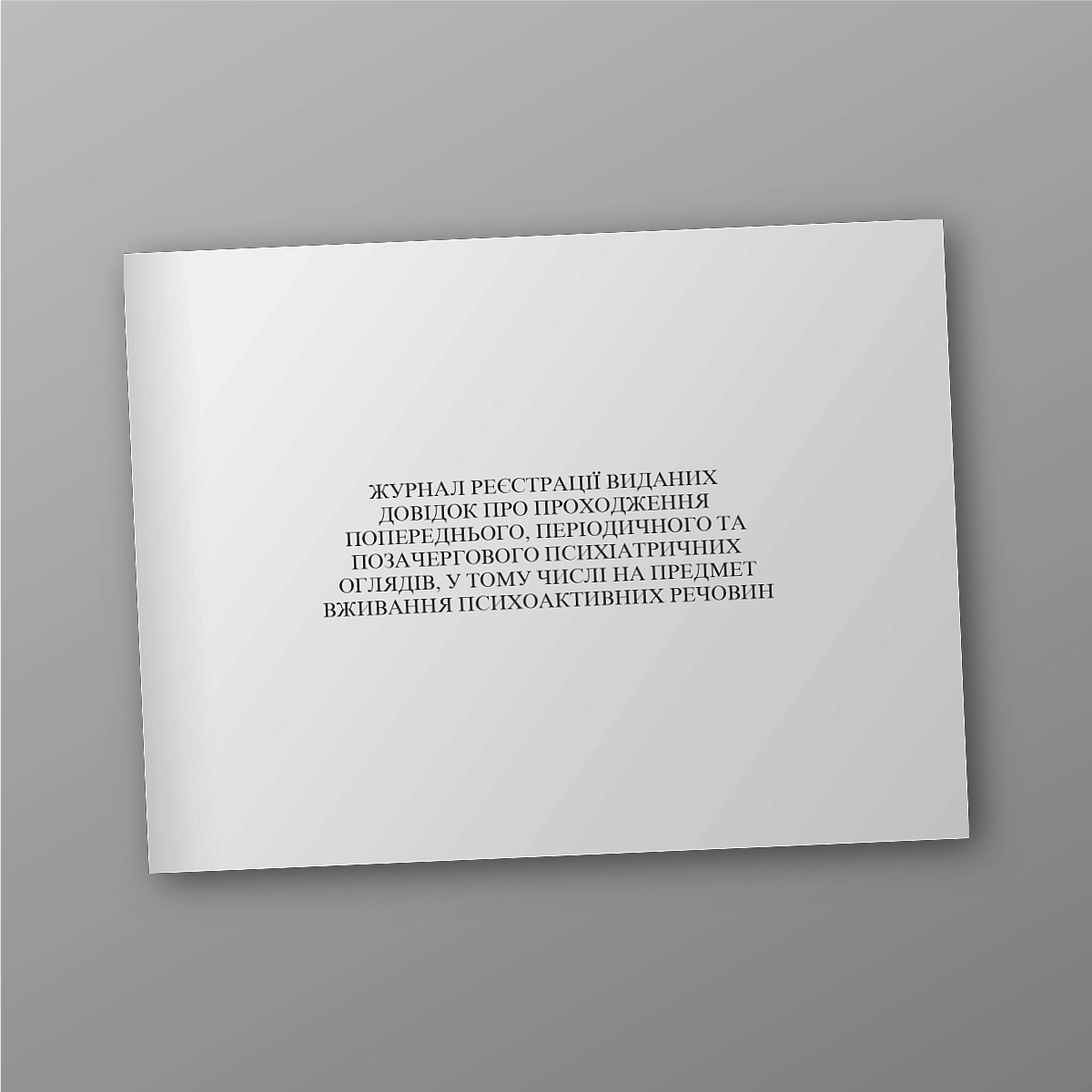 В printto.ua Вы можете заказать: Журнал регистрации выданных Справок о прохождении предварительного, периодического и внеочередного психиатрических осмотров, в том числе на предмет употребления психоактивных веществ.