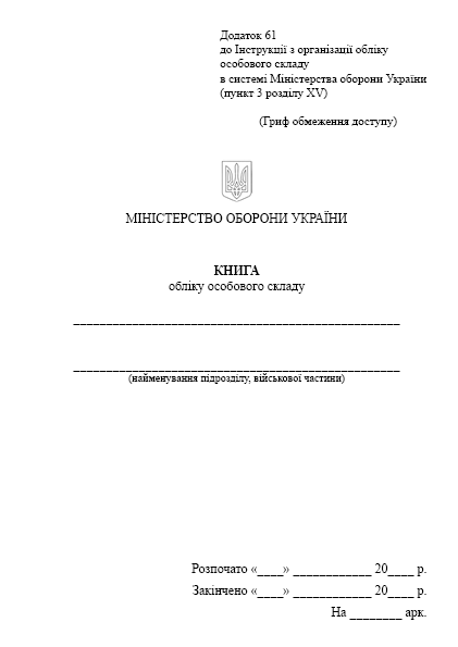 Приложение 61к Инструкции по организации учета личного состава в системе Министерства обороны Украины (пункт 3 раздела XV).