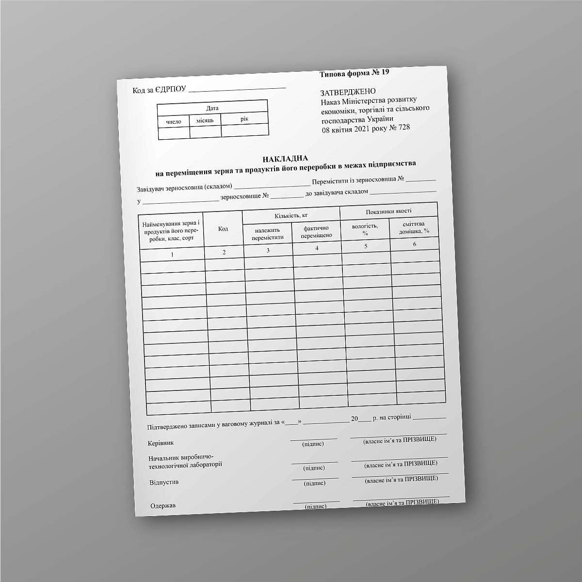 В printto.ua Вы можете заказать: Накладная на перемещение зерна и продуктов его переработки в пределах предприятия.