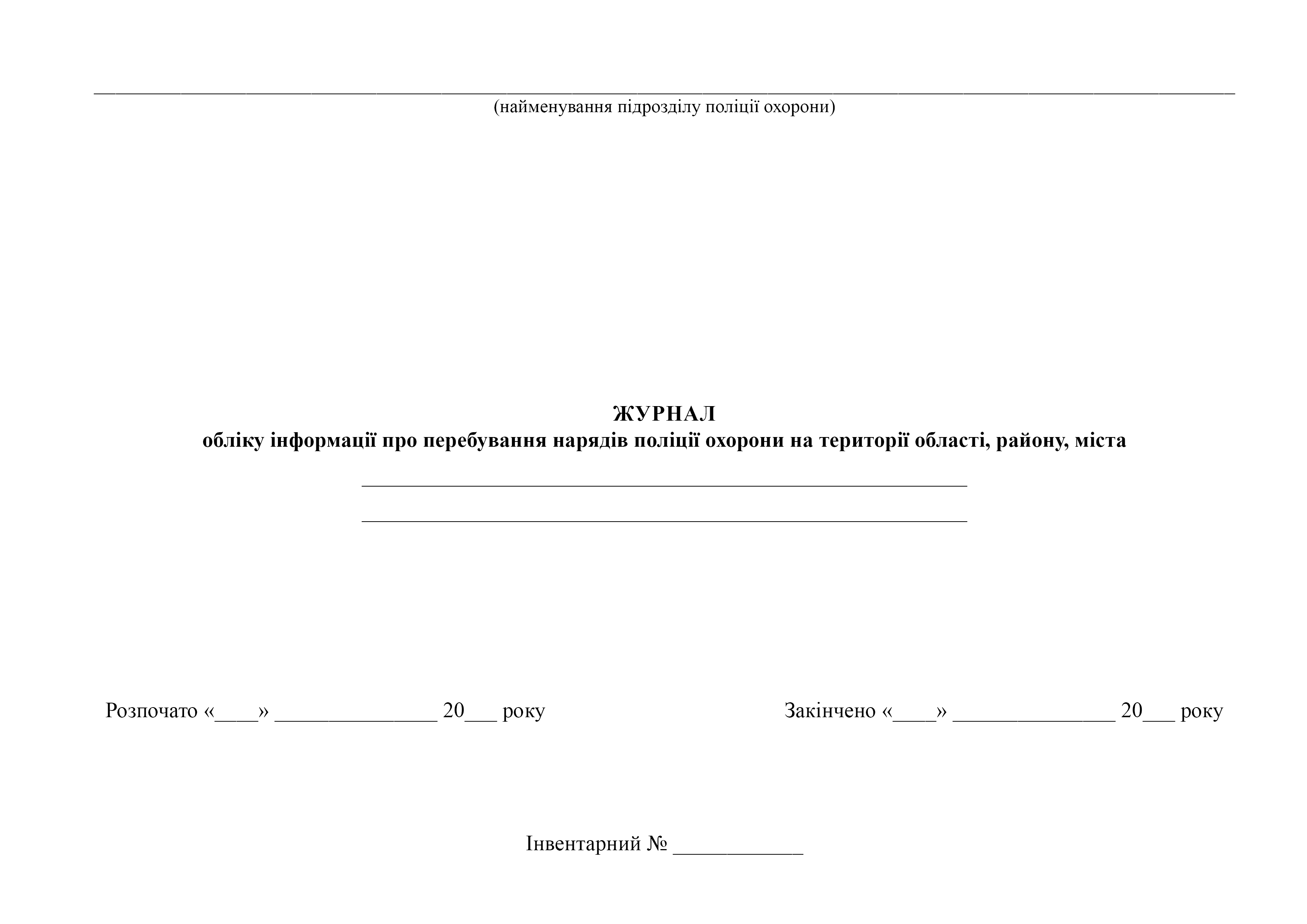 Журнал учета информации о пребывании нарядов полиции охраны на территории области, района, города.