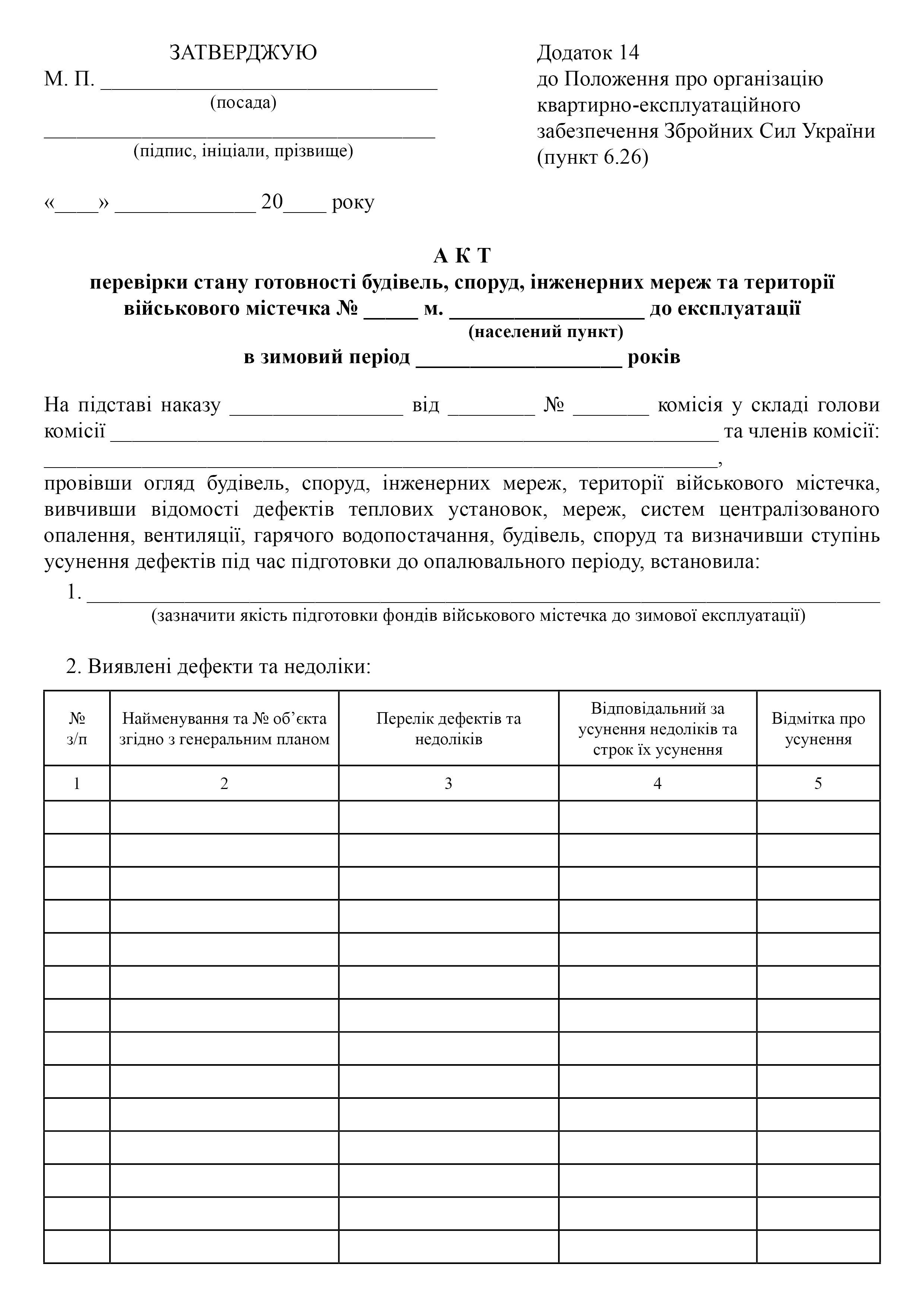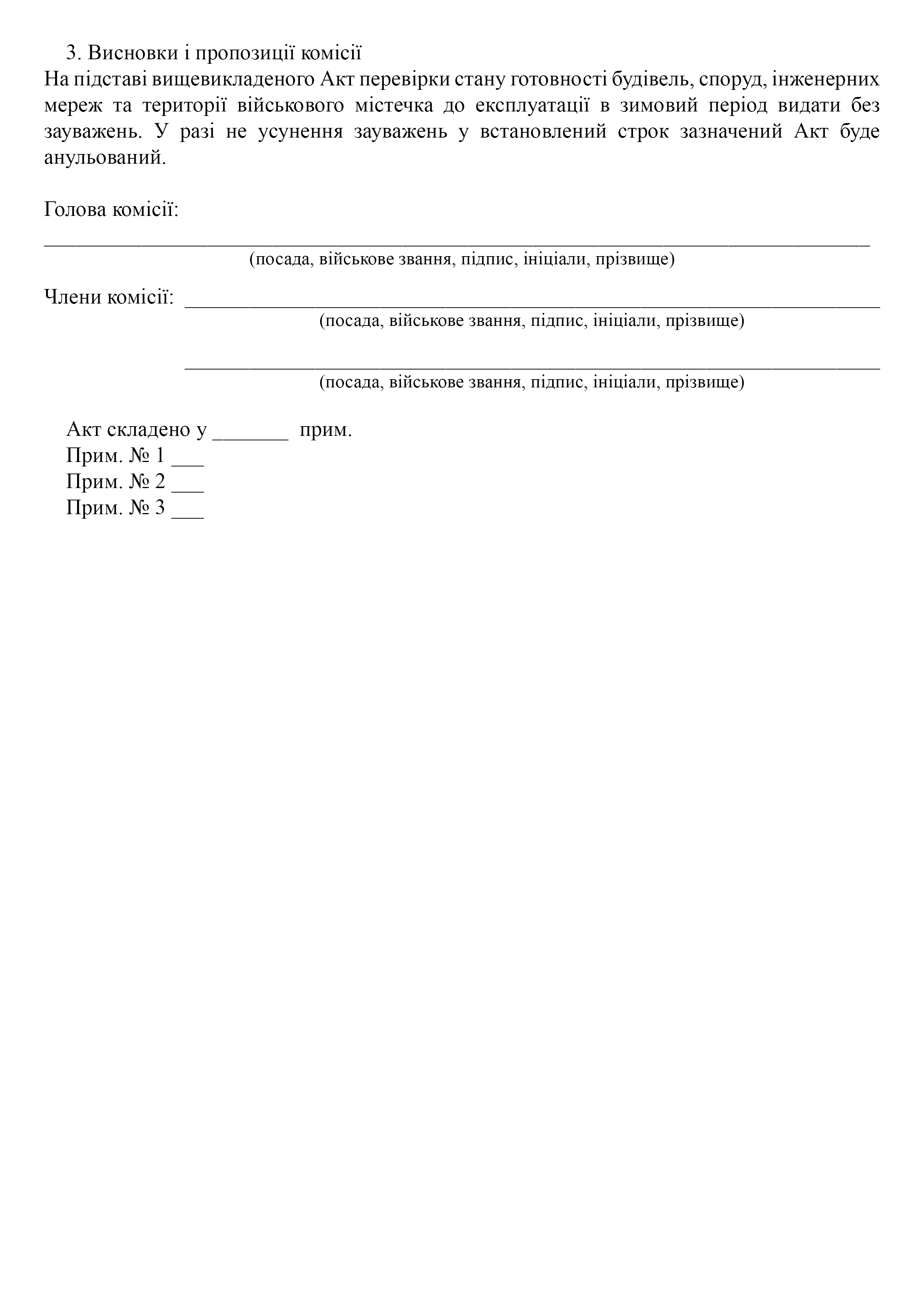 В printto.ua Вы можете заказать: Акт проверки состояния готовности зданий, сооружений, инженерных сетей и территории военного городка к эксплуатации в зимний период.
