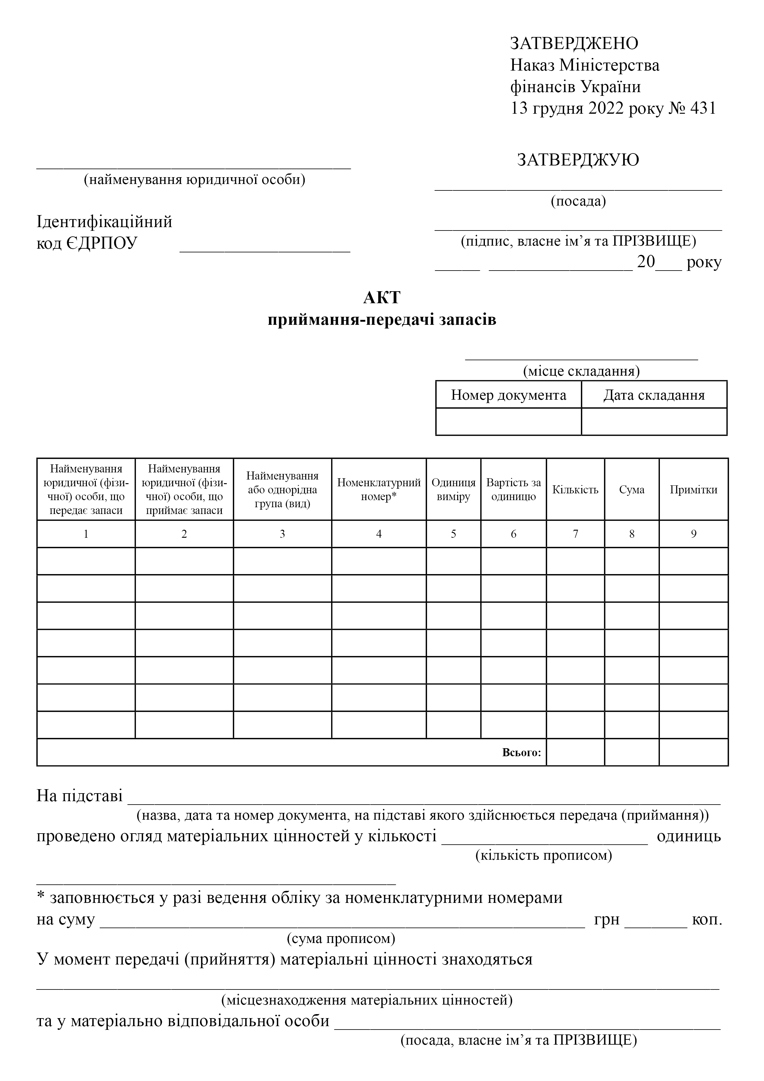 В printto.ua Вы можете заказать: Акт приемки-передачи запасов.