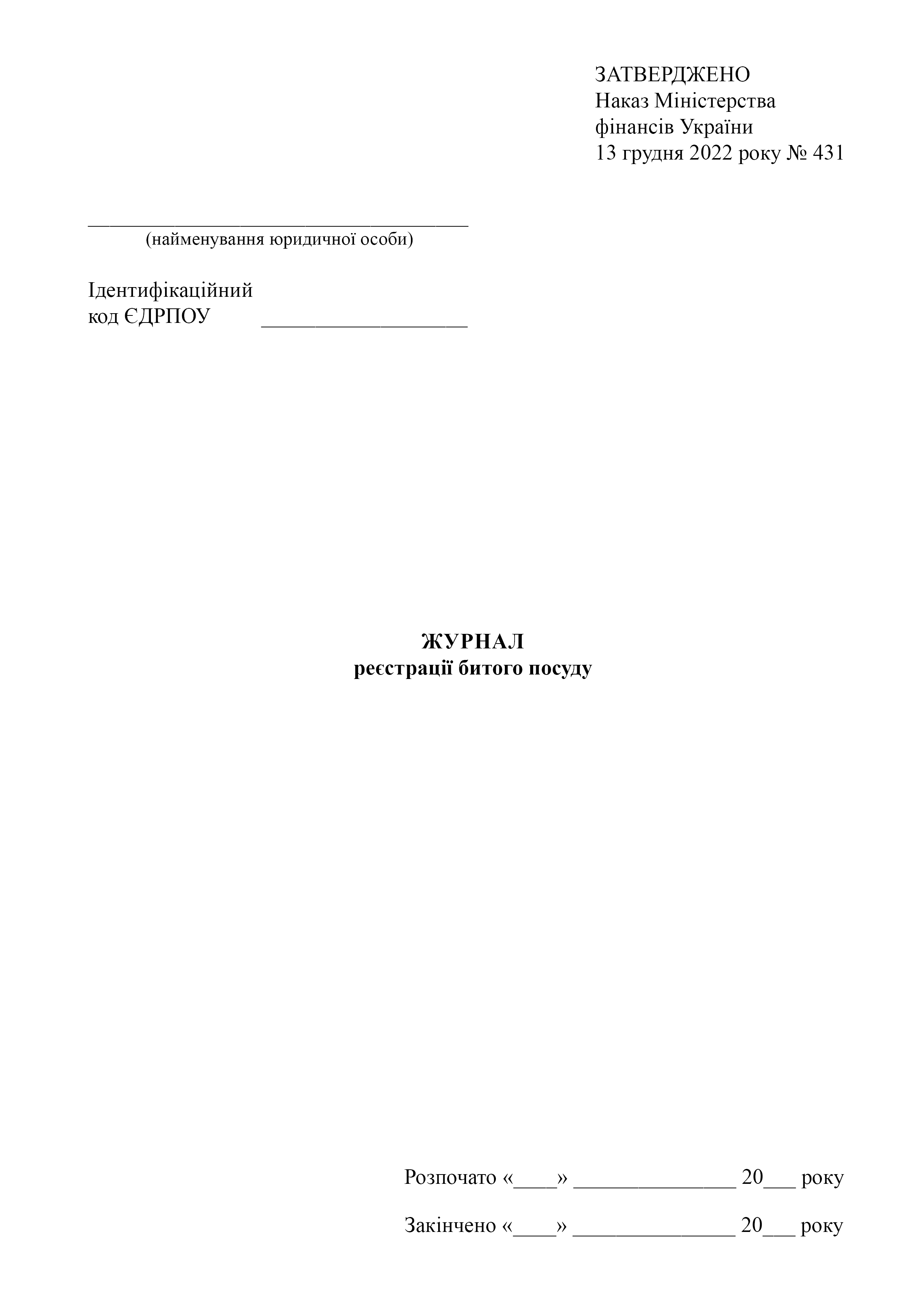 В printto.ua Вы можете заказать: Журнал регистрации битой посуды.