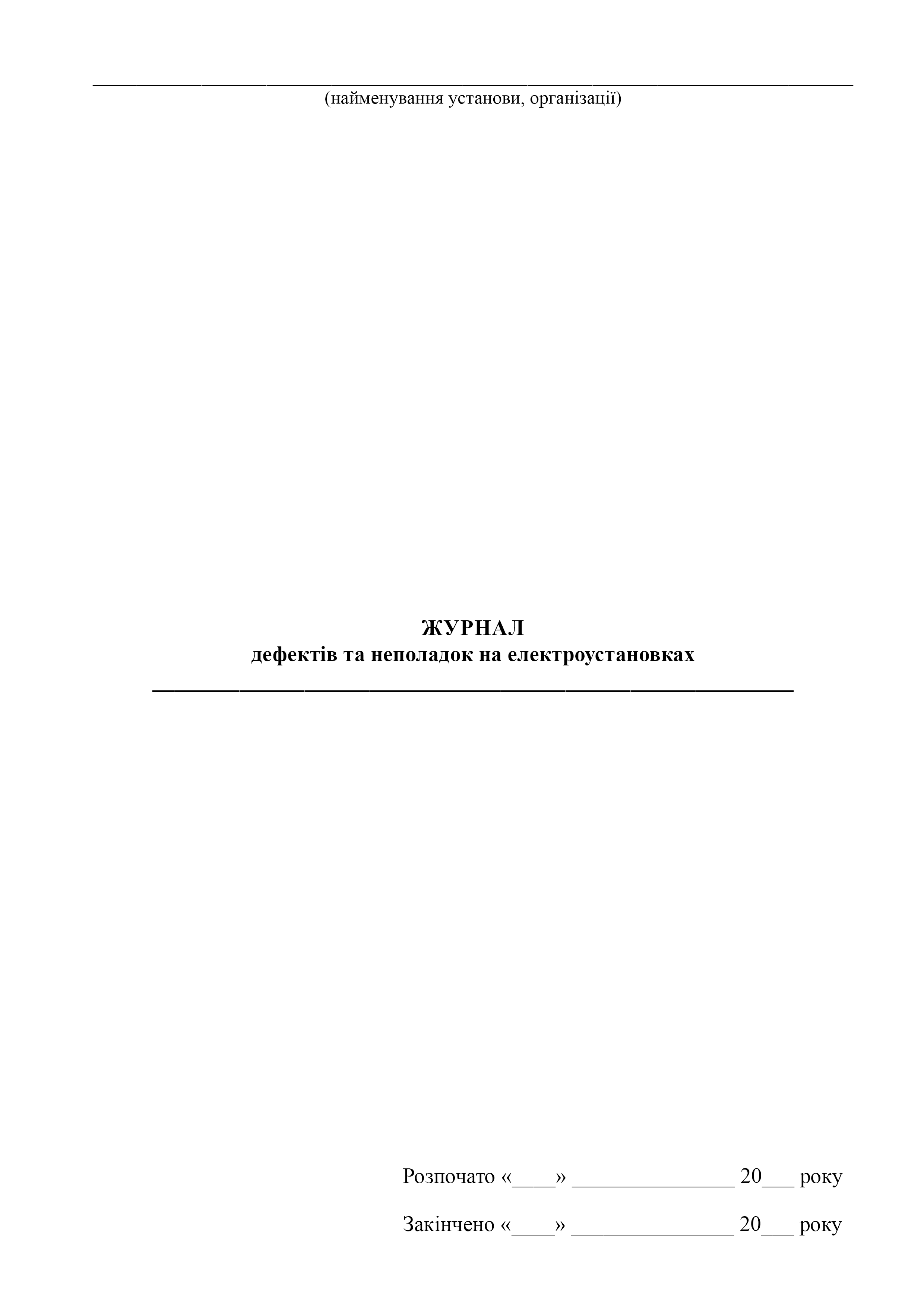 Журнал дефектов и неполадок на электроустановках.