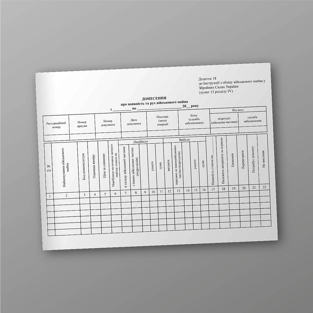В printto.ua Ви можете замовити журнал: Донесення про наявність та рух військового майна.