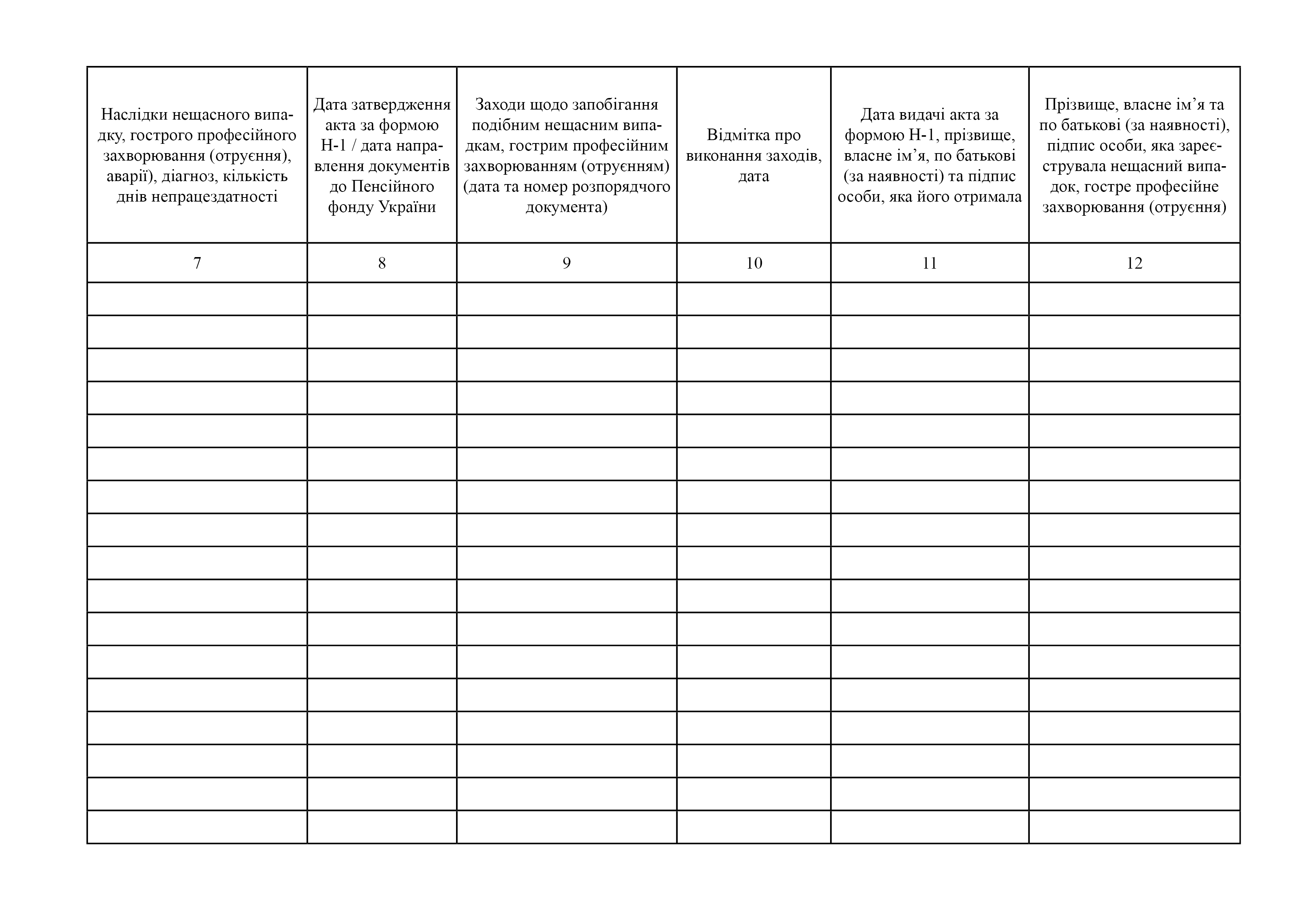 Журнал реєстрації осіб, що потерпіли від нещасних випадків (гострих професійних захворювань (отруєнь) на виробництві.
