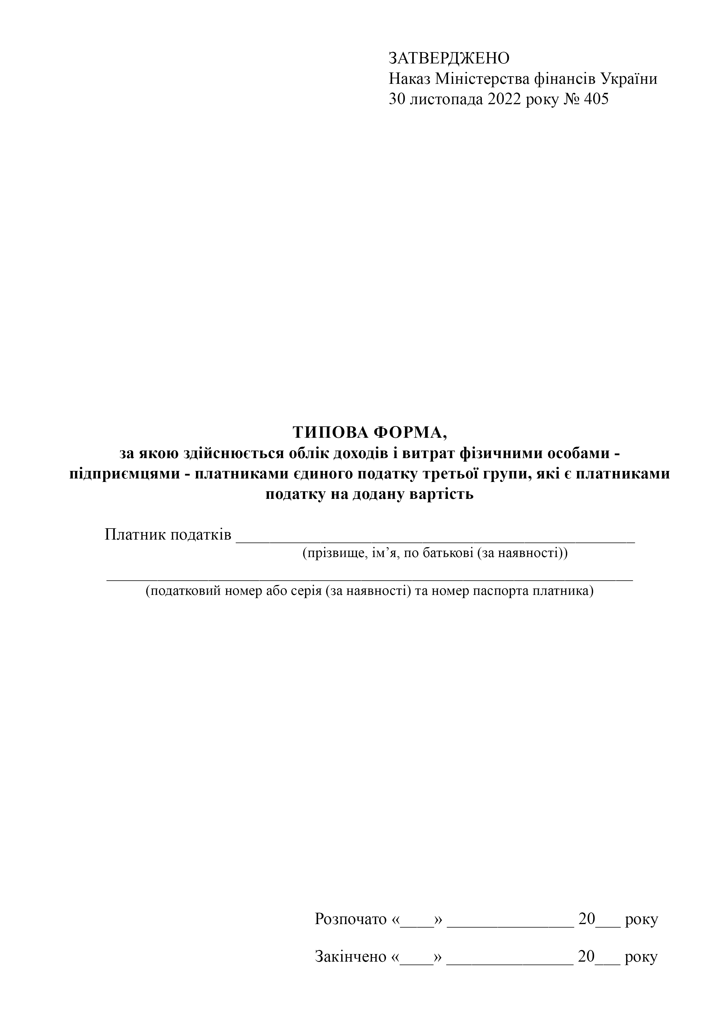 Типова форма, за якою здійснюється облік доходів і витрат фізичними особами - підприємцями - платниками єдиного податку третьої групи, які є платниками податку на додану вартість.